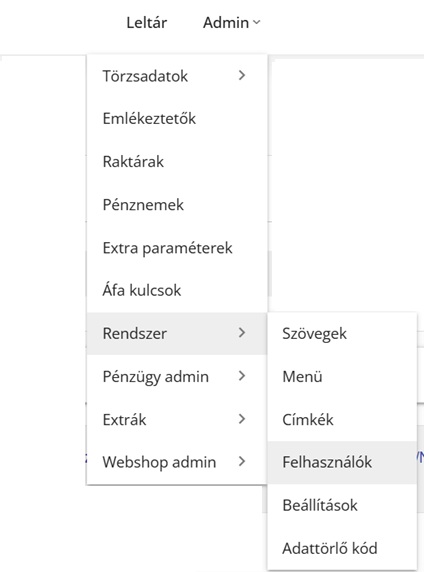 ADMIN > Rendszer > Felhasználók > Új felhasználó
