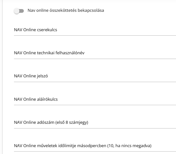 Amíg ezek az adatok nincsenek megadva, nem történik adatszolgáltatás a NAV irányába.