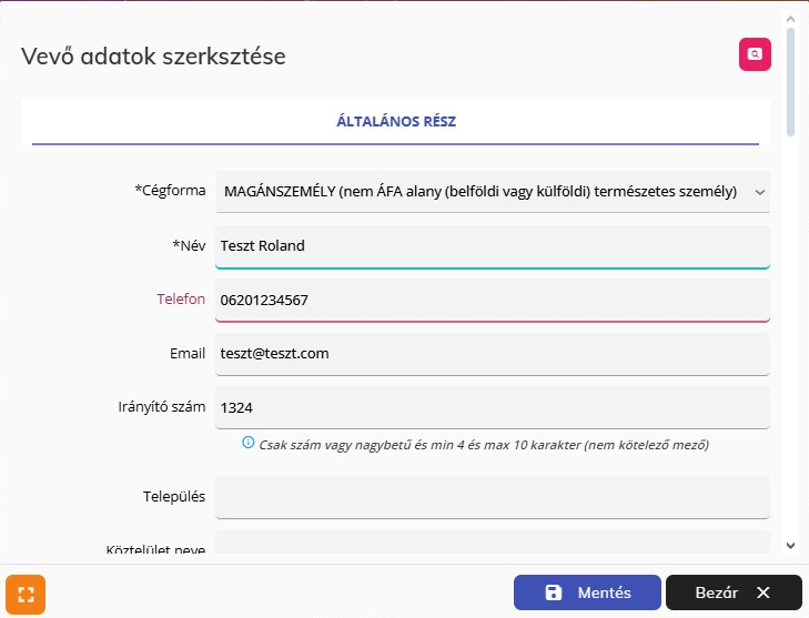 Számlázás beállítása